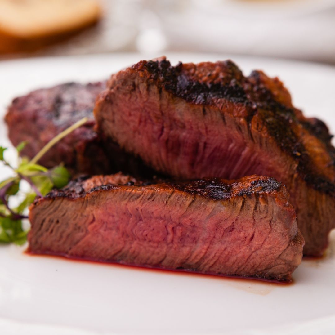 Our beef packages are typically 20-25% steaks, 25-30% slow cook cuts and 50% ground beef. The NY Strips, Ribeyes and Top Sirloins are approximately 1.25" thick and the Filets are cut 2" thick.
